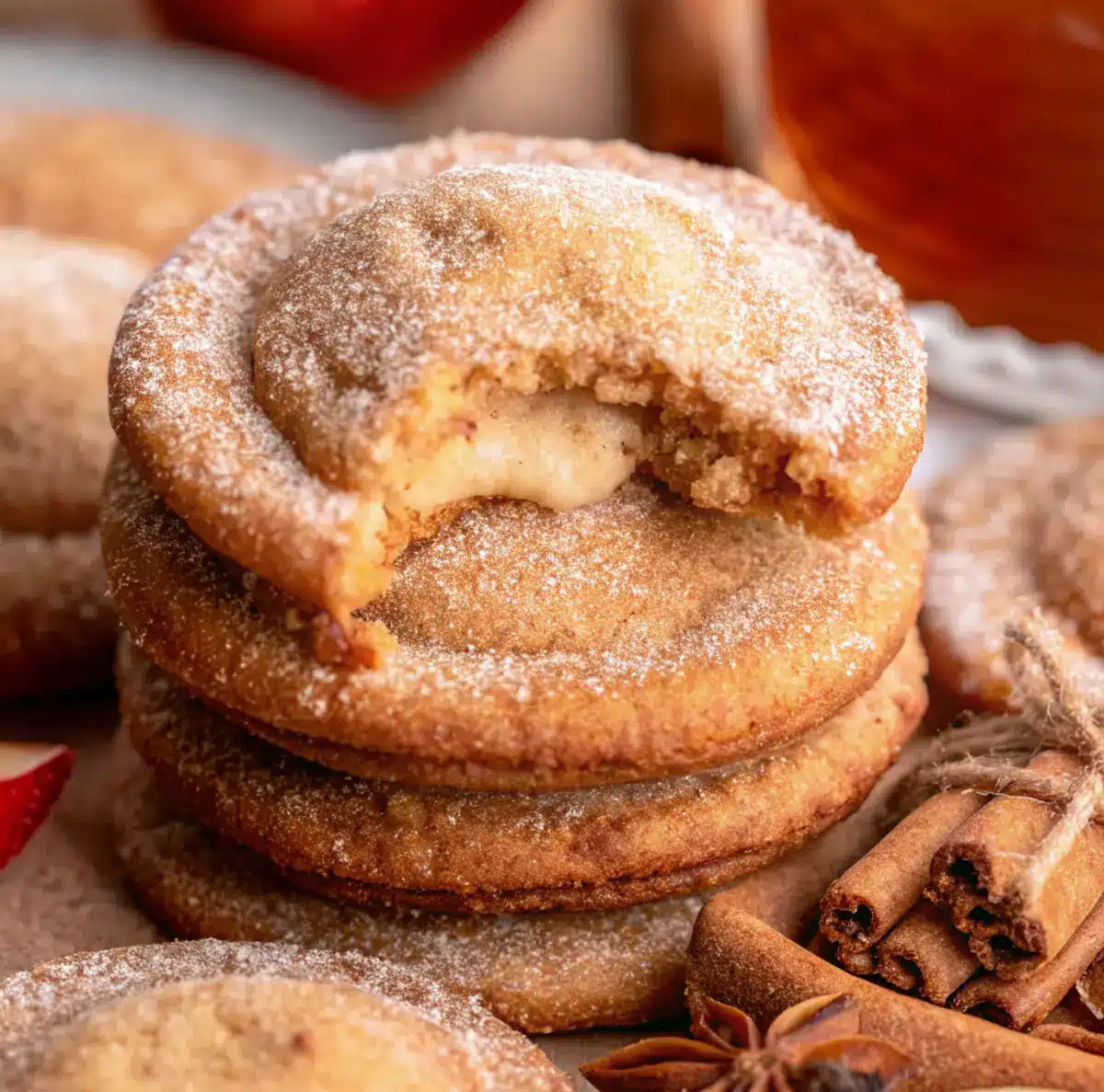 Yes, you can! Simply follow the cookie dough recipe, but skip the cheesecake filling step. The apple cider reduction and spiced sugar coating will still give you a delicious, chewy apple cider cookie. Just be sure to adjust the baking time down to about 9-10 minutes.