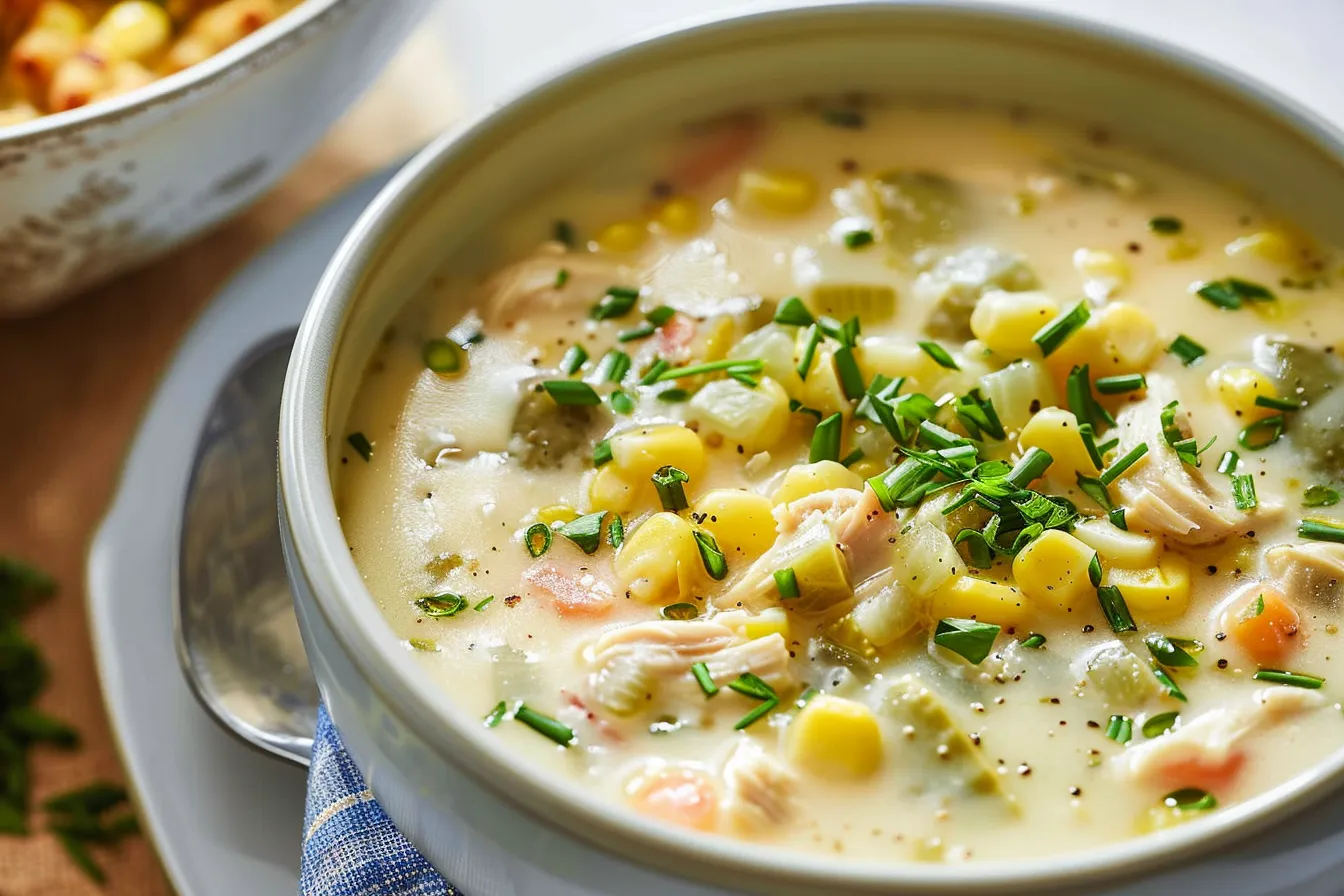 Savor a hearty Chicken and Corn Chowder packed with flavor in this ultimate recipe Perfect for any meal