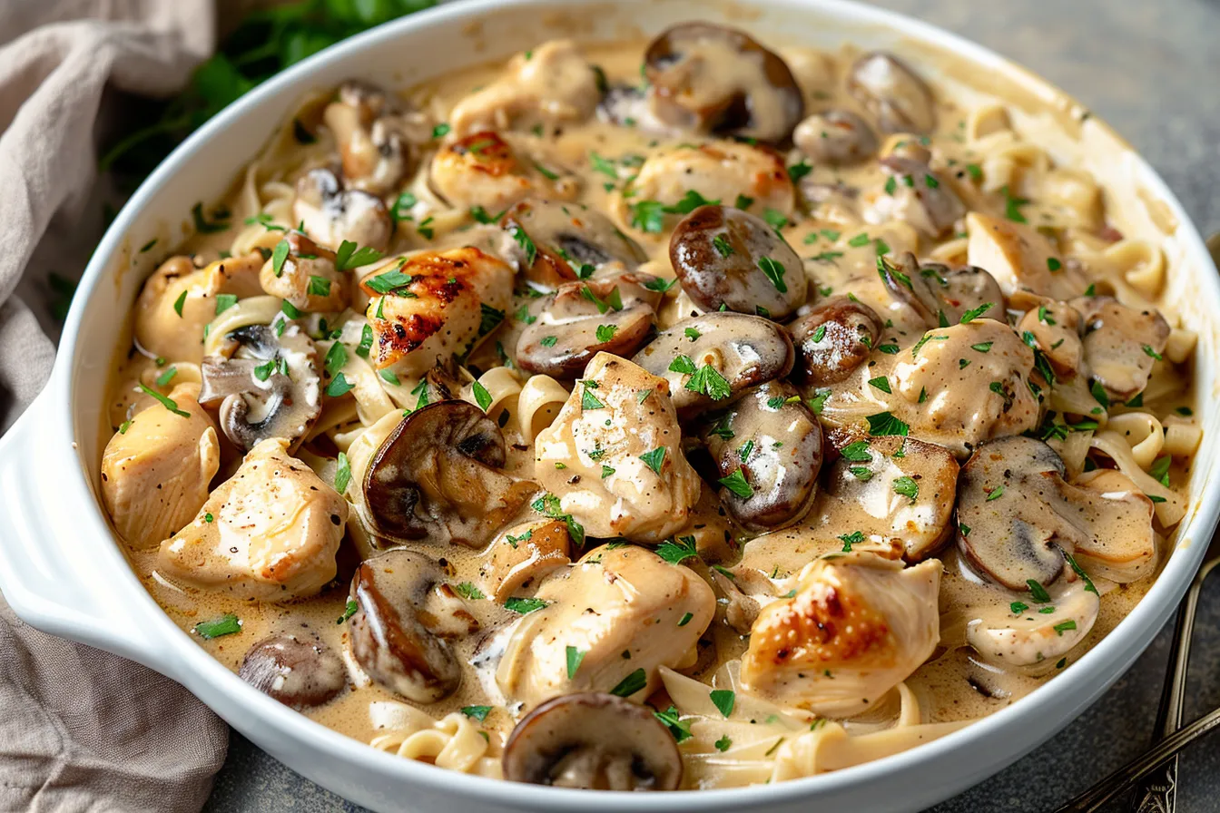 Creamy chicken stroganoff recipe Easy mushroom stroganoff dinner Quick chicken and mushroom