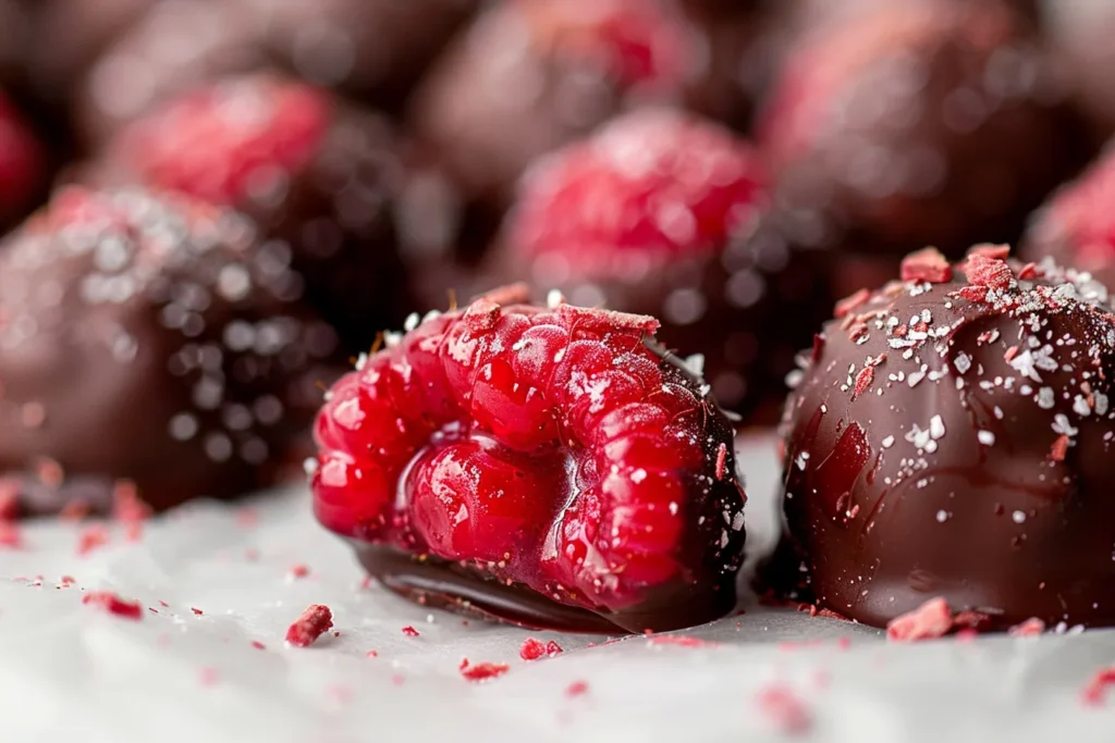 Indulge in these delectable chocolatecovered raspberry bites for a sweet treat
