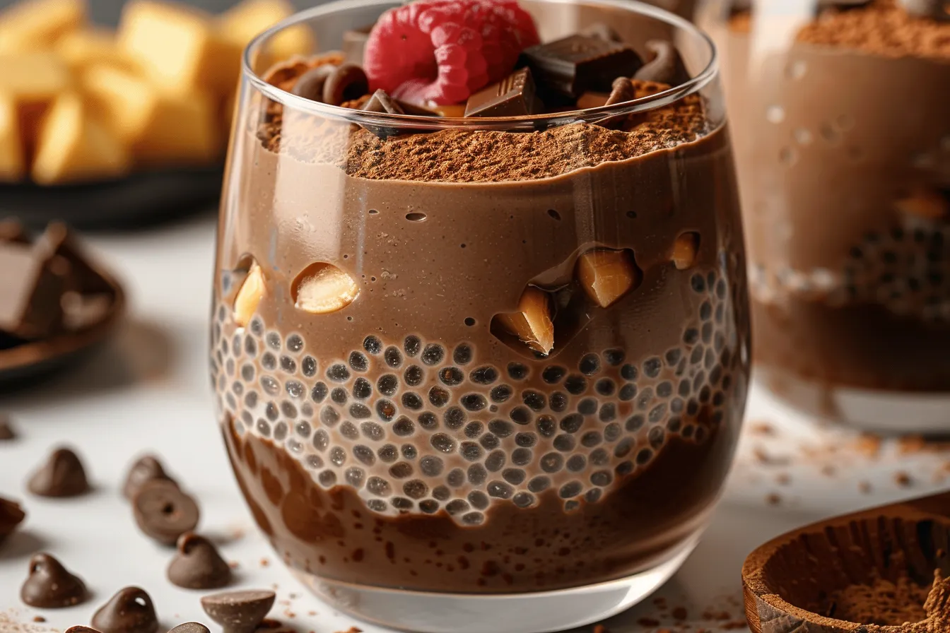 Easy choc PB chia seed pudding recipe Rich healthy dessert or breakfast Learn the simple tech make this ultimate peanut butter treat now 155 chars