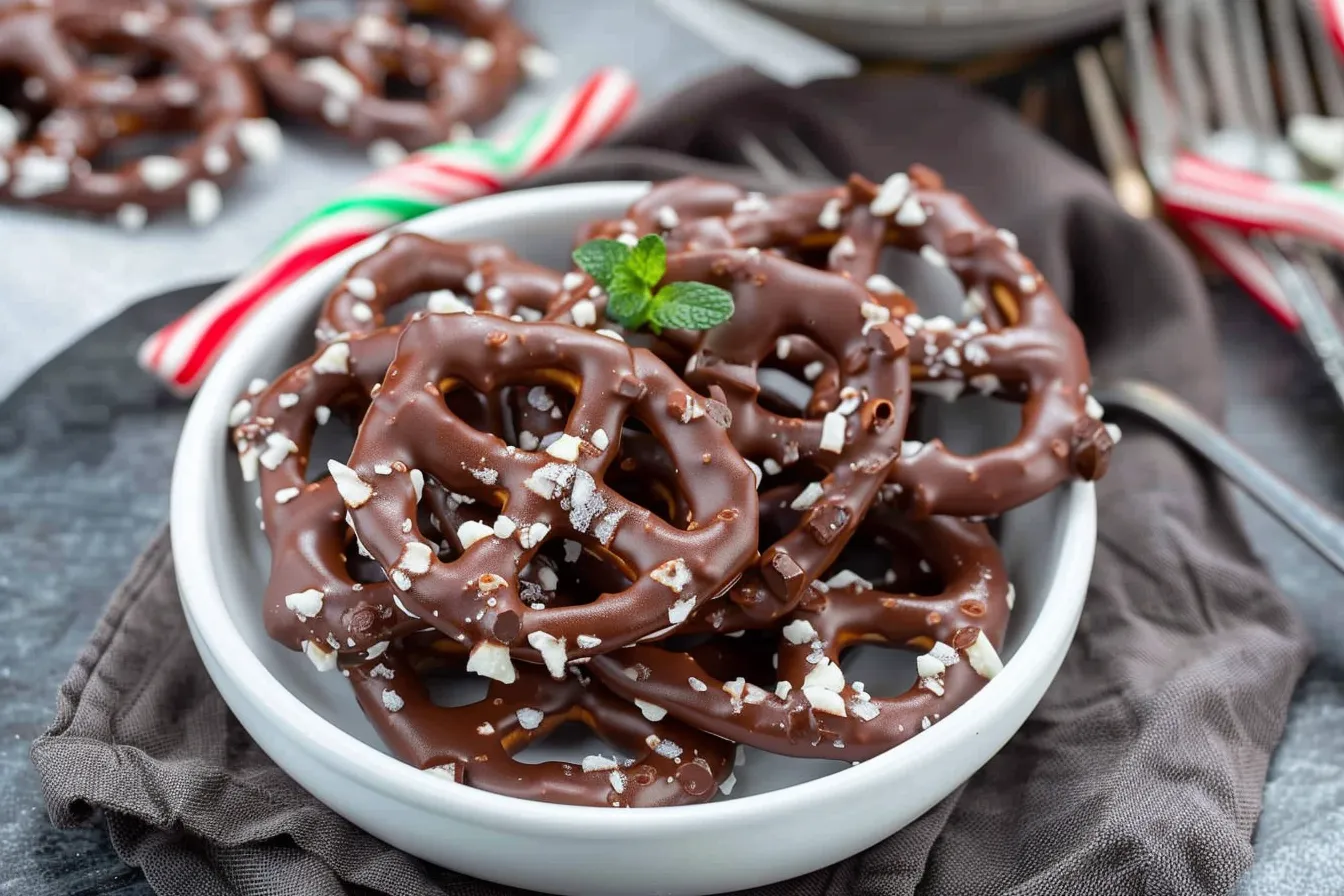 Chocolate pretzels with peppermint Easy decadent minty snack recipe