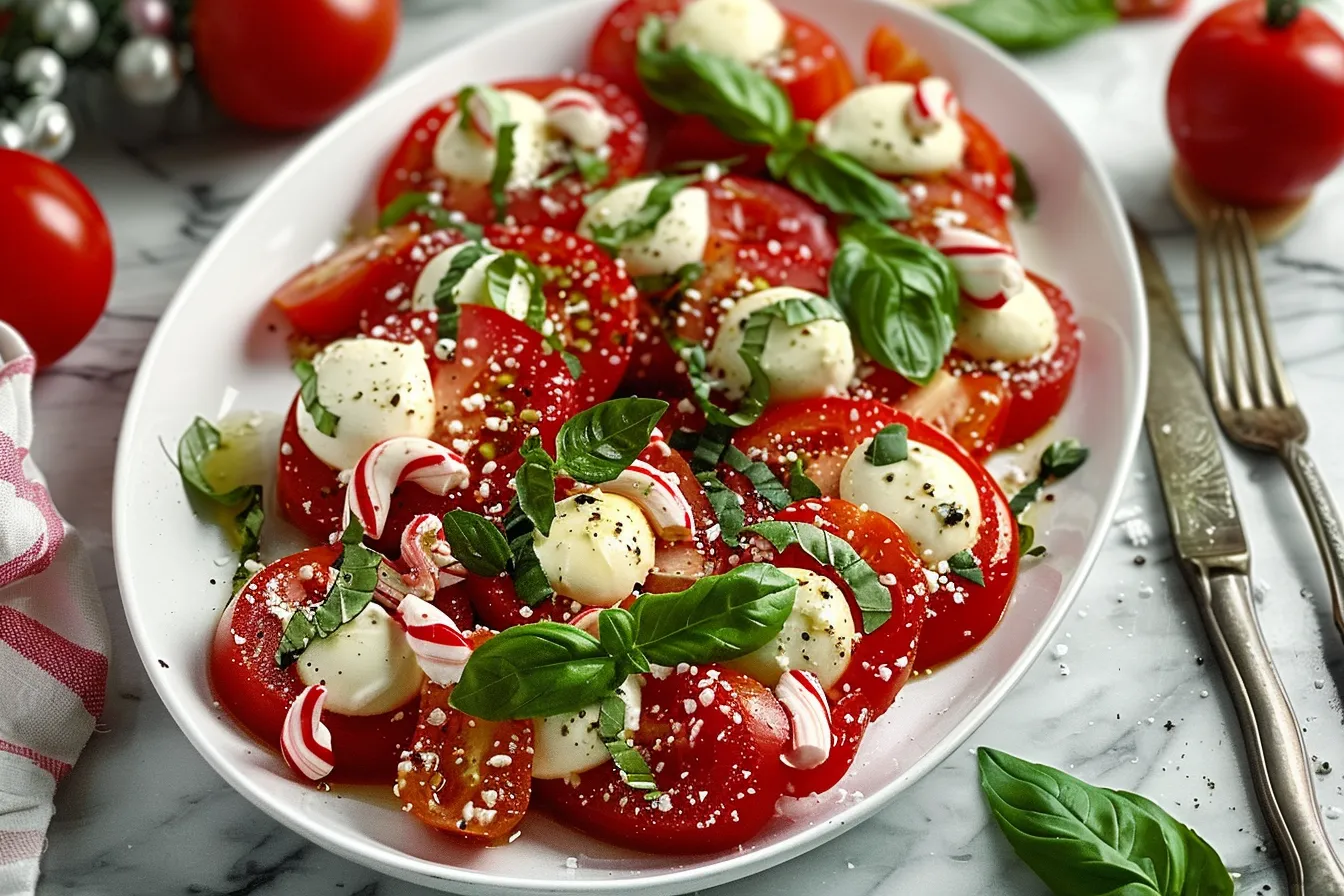 Christmas Caprese candy cane appetizer board Festive holiday entertaining