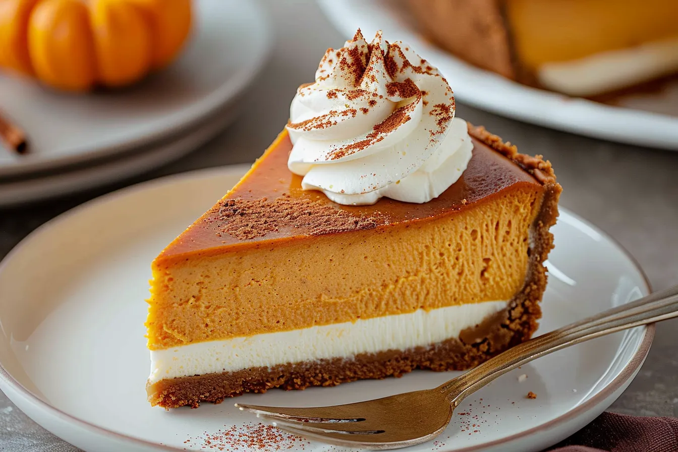 There you have it – a foolproof recipe for Easy Pumpkin Pie Cheesecake that’s guaranteed to impress. This dessert is the ultimate crowd-pleaser, combining the best of two beloved classics. From the buttery graham cracker crust to the creamy, pumpkin-spiced filling, every bite is a taste of fall heaven. So, gather your ingredients, preheat your oven, and get ready to bake up a masterpiece! Don’t forget to snap a photo of your beautiful creation and share it with me in the comments below. I can’t wait to see your amazing bakes!